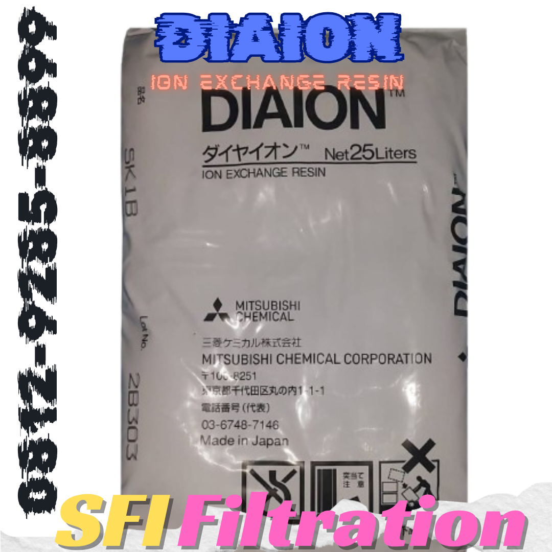 Mitsubishi DIAION adalah resin penukar ion (ion exchange resin) berkualitas tinggi yang diproduksi oleh Mitsubishi Chemical Corporation (Jepang). Resin ini digunakan untuk menghilangkan ion-ion terlarut dalam air, seperti kalsium (Ca²⁺), magnesium (Mg²⁺), natrium (Na⁺), klorida (Cl⁻), sulfat (SO₄²⁻), dan lainnya, melalui proses pertukaran ion.